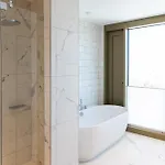 Verschiedene Zimmerausstattungen, darunter TV und ein Fernsehen mit mehreren Kanälen und schallisolierte Fenster, werden in einem Balkon und einer Sitzecke angeboten. Zu den Sicherheitseinrichtungen im Zimmer gehören ein persönlicher Safe und ein elektronischer Kartenschlüssel. Das Badezimmer verfügt über eine getrennte Toilette und eine Dusche sowie über ein Trockner und Badelaken.